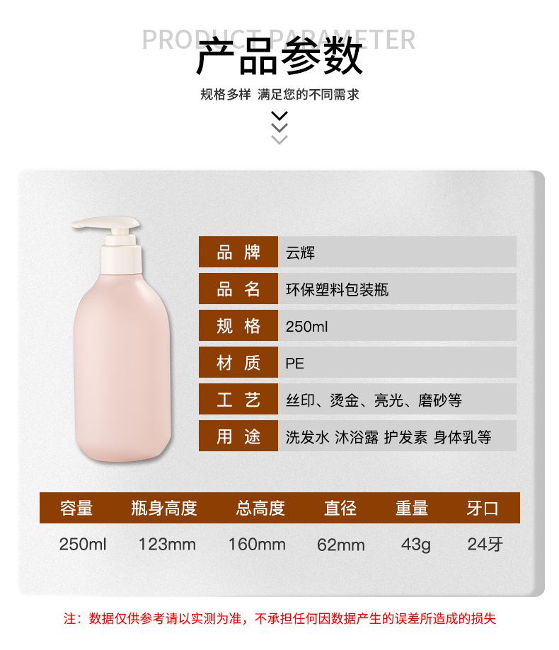 • 現(xiàn)貨250ml母嬰化妝品包材bb霜乳液瓶PE嬰兒洗發(fā)水瓶兒童沐浴露瓶,適用洗發(fā)水、沐浴露、護發(fā)素、身體乳、洗衣液等。