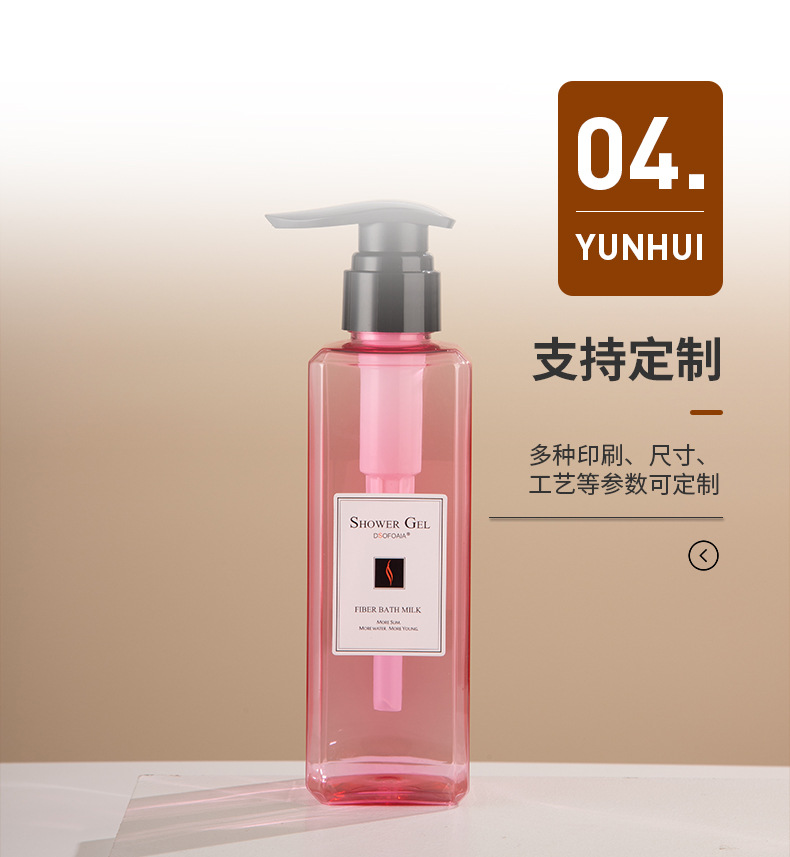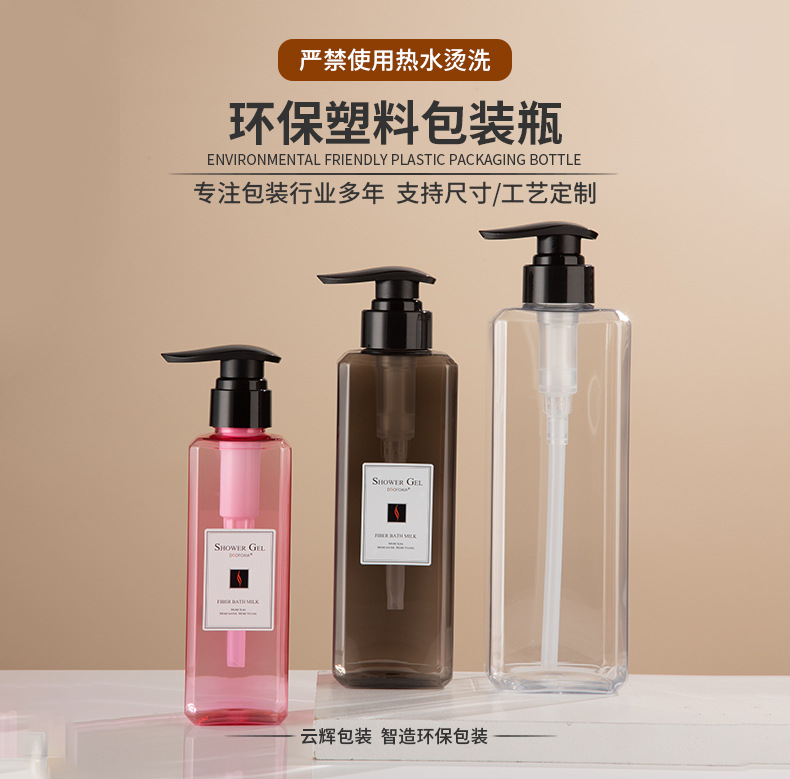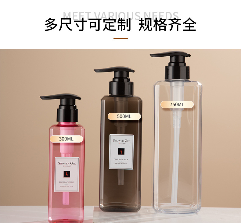 • 現(xiàn)貨PET四方瓶洗護(hù)包材300/500/750ml乳液瓶洗發(fā)水瓶沐浴露瓶,適用洗發(fā)水、沐浴露、護(hù)發(fā)素、身體乳、洗衣液等。