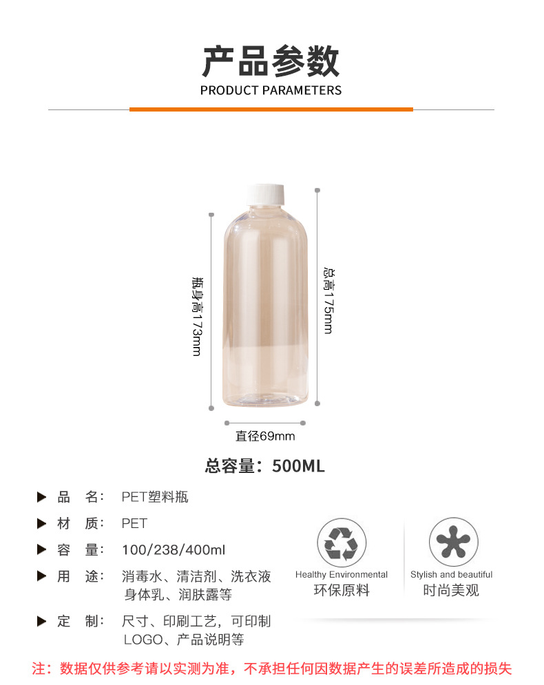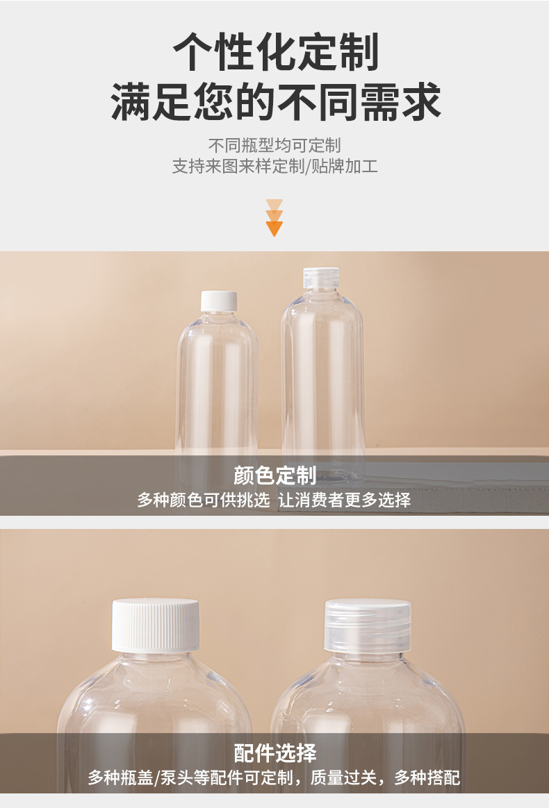 • 500ml消毒水水透明分裝瓶清潔劑洗衣液分裝瓶pet塑料瓶批發(fā),適用消毒水、清潔劑、洗衣液等。